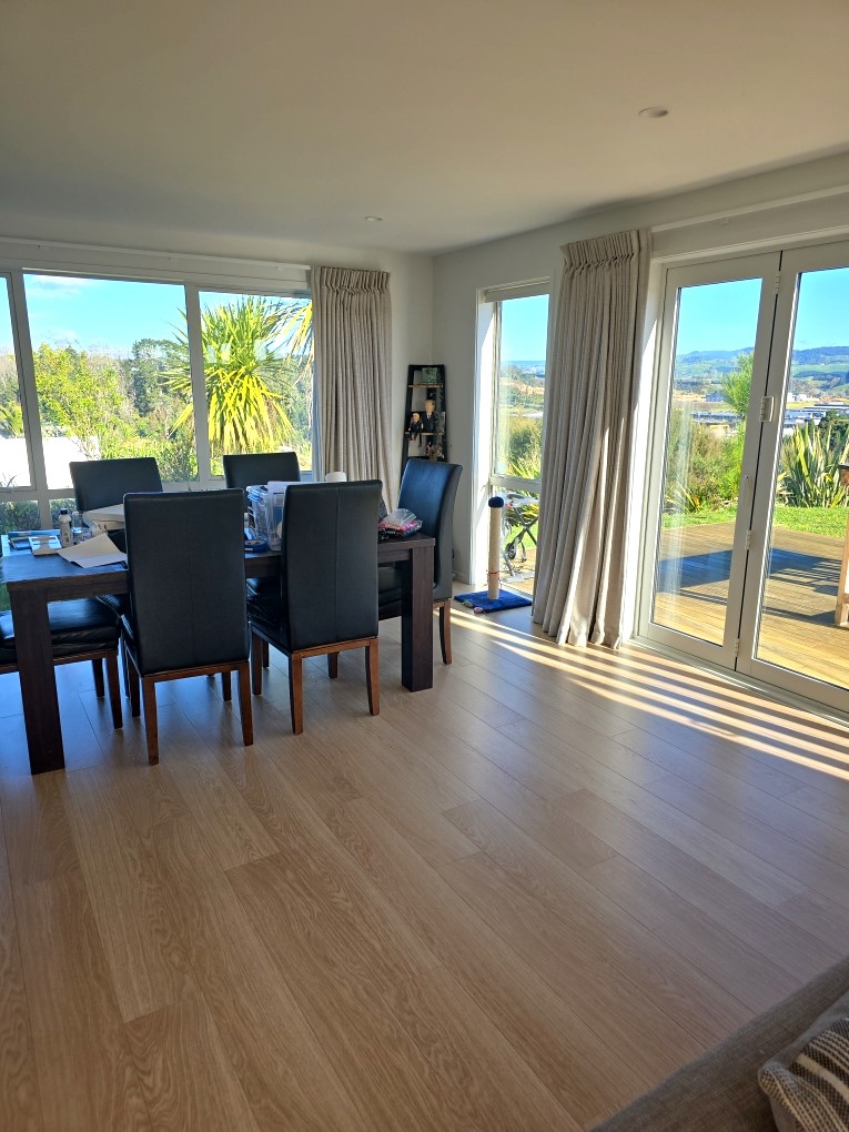 Step inside and discover three spacious bedrooms, light-filled and inviting, offering plenty of room for relaxation and comfort. The open-plan kitchen, dining, and living area creates a seamless flow, making it ideal for both entertaining and everyday family life. From the living room, sliding doors open out to a beautiful vista, allowing you to enjoy effortless indoor-outdoor living.